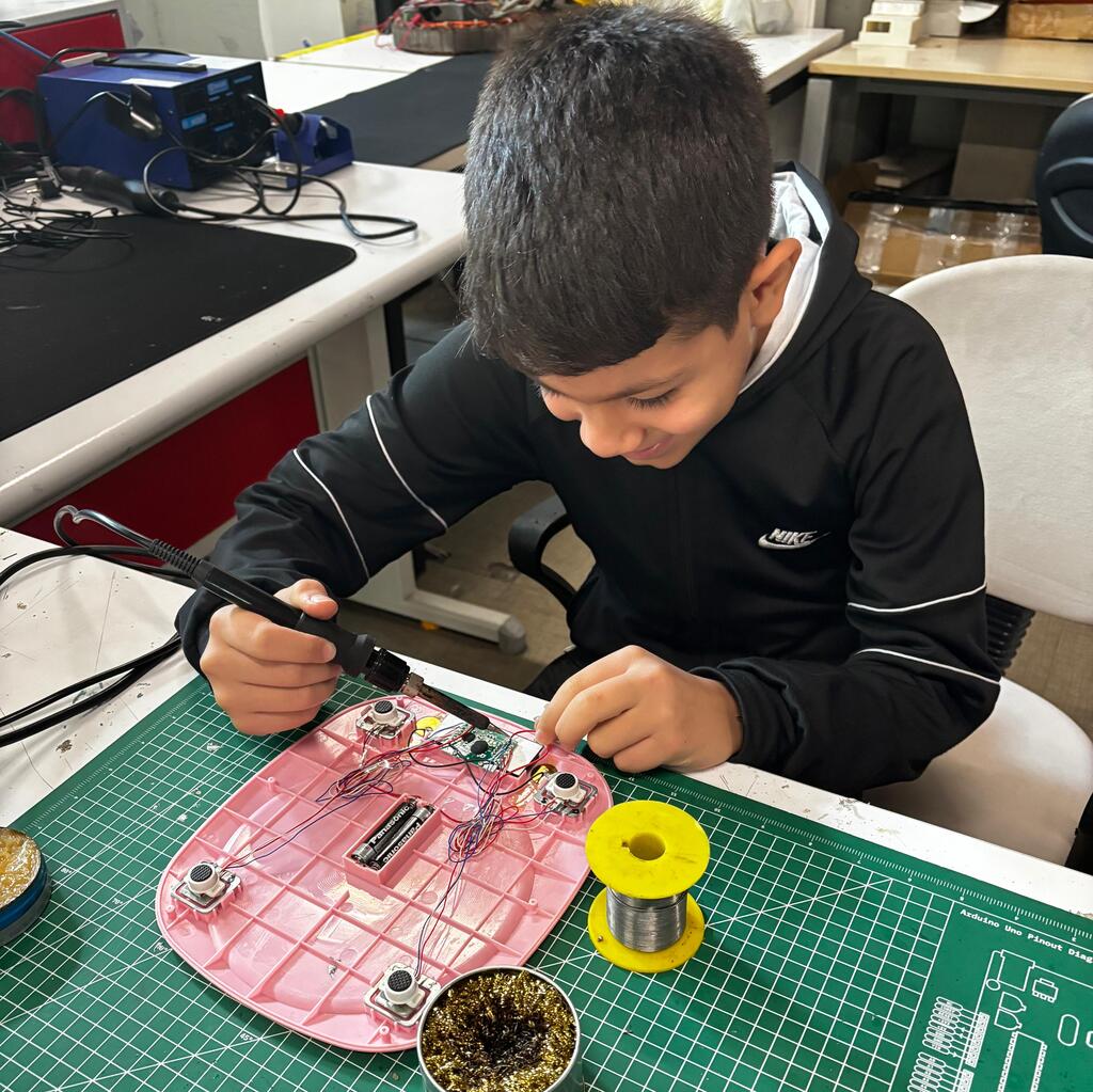 Çocuklar, yaş grubuna göre Arduino veya Makey Makey kart ile kendi elektronik projelerini tasarlar, deneyler yapar ve kodlama eğlenirken öğrenir.